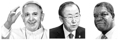 フランシスコ教皇、コンゴ民主共和国の医師デニス・ムクウェゲ、潘基文(パン・ギムン)国連事務