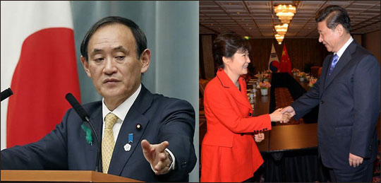 29日にはまた他の安倍内閣の官僚が韓-中首脳を正面から冒とくする妄言で波紋を起こした。菅義偉、日本官房長官はこの日、テレビ東 京の番組に出演し朴槿恵大統領と習近平、中国国家主席が最近、ハーグ会談で安重根記念館建設を評価したことについて「(韓中両国が)ハーグ核安保首脳会議 で(首脳会議の趣旨から)外れた会談をした」とし、「日本から言えば犯罪者、テロリスト記念館」という妄言を吐いた。