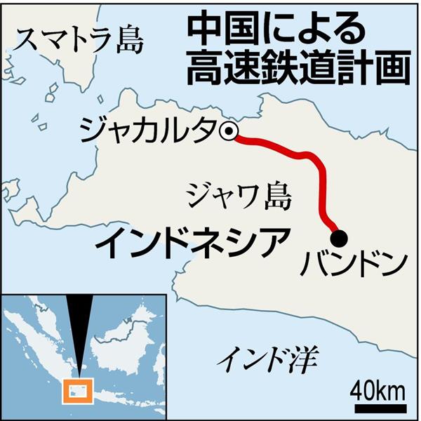 インドネシアは同9月、費用が安い「中速度」の鉄道にプランを変更し、日中両案を不採用としたが、その後、事業費を丸抱えする中国の新提案の採用を決定。日本は選考過程の不透明さをインドネシアに抗議するなど波紋を呼んだ。