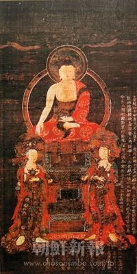 高句麗壁画を端緒とする朝鮮絵画は、新羅、百済の三国時代を経て、西暦918年に建国された高麗王朝で特に仏教画として昇華した。