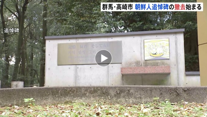 群馬県高崎市の公園に設置された朝鮮人労働者の追悼碑の撤去作業が、きょう始まりました。