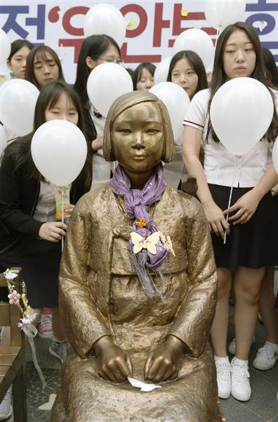 意趣返しとはいえ不幸な過去の被害を象徴する少女像を松陰像と同列に扱う乱暴さには驚かされるが、韓国人にとって少女像はある面、精神的支柱なのかもしれない。反日の「聖地」、「慰安婦」合意後は日本と“歴史談合”した朴槿恵政権を糾弾する「拠点」だ。