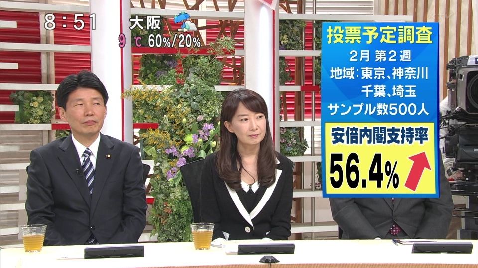 引用元: ・【調査/新報道2001】安倍内閣支持54.6% 次回選挙投票先 自民42.2% 民主9.0% 共産3.6% 公明3.6% 維新3.0% 生活0.8%[3/29]
