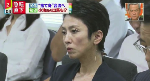 1: 右大臣・大ちゃん之弼 ★ 2017/10/16(月) 23:49:35.89 ID:CAP_USER 民進党の蓮舫前代表は16日、横浜市の街頭演説で、希望の党の小池百合子代表に不信感をあらわにした。民進党出身議員らの合流に際して理念や政策の一致を求めた「排除の論理」に対し「排除するという言葉に耳を疑った」と批判。その上で「信頼している方だけを(衆院選で)応援する。立憲民主党と希望の党の候補が一緒に出ている選挙区は、立憲民主の候補者を応援したい」と強調した。