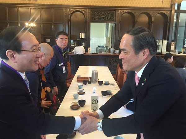 ▲訪日した正義の党ノ・フェチャン国会議員は9日、社民党・吉田忠智党首に会って昌原韓国サンケン解雇問題解決を議論した。(c)ノ・フェチャン議員室